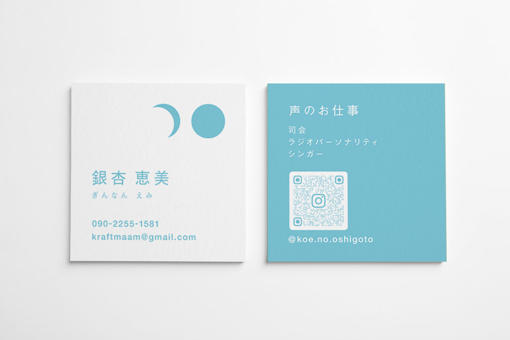 札幌で占い師やシンガー活動として活動されている銀杏恵美さまの名刺です。